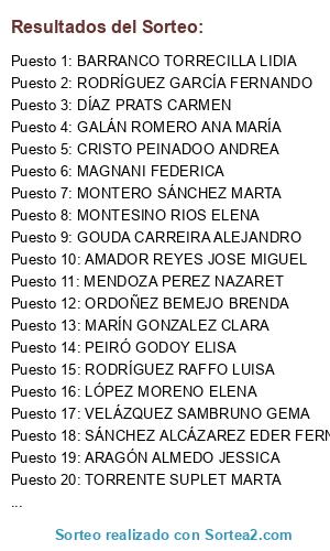 - Puesto 24: GALÁN ROMERO ANA MARÍA