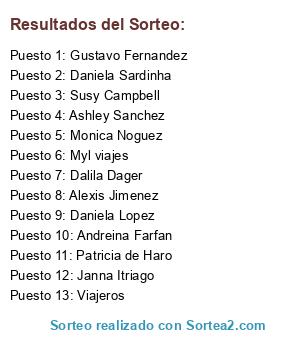 Lista de participantes: Mariangelli Tomaselli, Daniela Sardinha, Daniela Lopez, Patricia de Haro, Gustavo Fernandez, Ashley Sanchez, Janna Itriago, Dalila Dager, Viajeros, Alexis Jimenez, Andreina Farfan, Monica Noguez, Susy Campbell, Myl viajes.