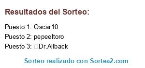 Lista de participantes: Sanson4444 (9), Oscar10 (9), pepeeltoro (3), Nolky (3), Poolman (3), CGastaldi (2), PinshiJuan (2), Dr.Allback (2), Ibertgdl (2), Leon King (1), ElJuanito (1), A.Knight (1), JC Poker (1).