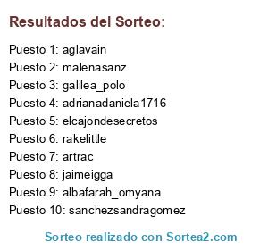 Lista de participantes: sanchezsandragomez, albafarah_omyana, rakelittle, galilea_polo, elcajondesecretos, jaimeigga, malenasanz, adrianadaniela1716, artrac, aglavain.