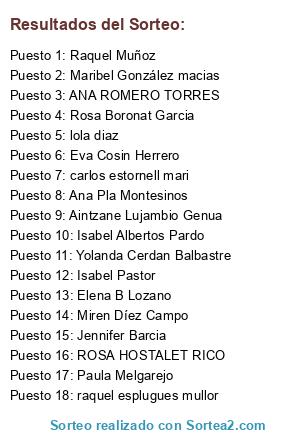 Lista de participantes: Raquel Muñoz, Miren Díez Campo, Isabel Albertos Pardo, Yolanda Cerdan Balbastre, Isabel Pastor, Ana Pla Montesinos, Rosa Boronat Garcia, Eva Cosin Herrero, raquel esplugues mullor, Jennifer Barcia, lola diaz, ROSA HOSTALET RICO, Aintzane Lujambio Genua, Elena B Lozano, carlos estornell mari, Maribel González macias, ANA ROMERO TORRES, Paula Melgarejo.