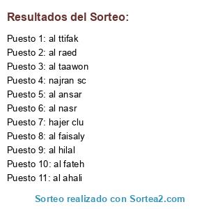Lista de participantes: al ahali, al ansar, al ttifak, al faisaly, al fateh, al hilal, al itthad, al nasr, al raed, al shapab, al taawon, al wahada, hajer clu, najran sc.