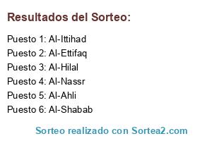 Lista de participantes: Al-Ahli, Al-Ettifaq, Al-Hilal, Al-Ittihad, Al-Nassr, Al-Shabab.