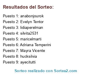 Lista de participantes: anabonjourok, ayecitutti, hucksilvia, silvita2531, lidiaperelman, maricelmarti, Evelyn Tentor, claudiaelisabetjaimes, Adriana Temperini, Mayra Vicente.