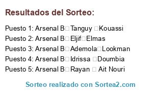 - Puesto 7: Arsenal B Luca Lezzerini