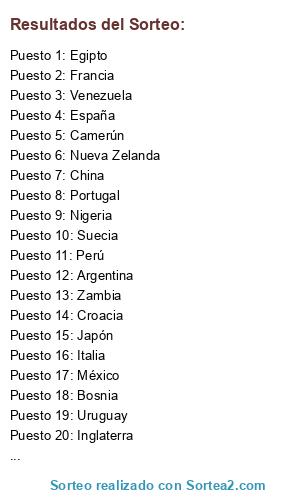 Resultados del sorteo: