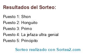 Lista de participantes: Shon, Primo, Principito, La jefaza ultra genial, Honguito.