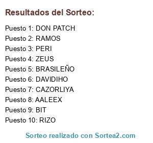 Lista de participantes: RIZO, ZEUS, AALEEX, BIT, BRASILEÑO, DON PATCH, DAVIDIHO, RAMOS, PERI, CAZORLIYA.