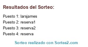 Lista de participantes: larsjames, reserva, reserva1, reserva2.