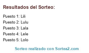 Lista de participantes: Lolo, Lala, Lele, Lulu, Lili.