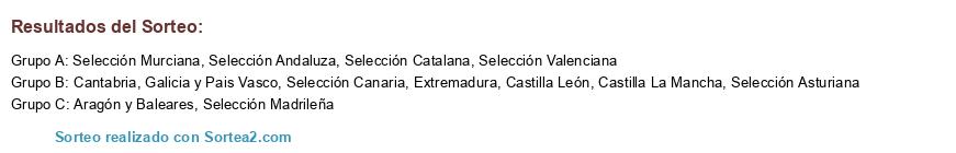 Lista de participantes: Selección Andaluza, Selección Catalana, Selección Valenciana, Selección Canaria, Selección Murciana, Selección Madrileña, Selección Asturiana, Cantabria, Galicia y Pais Vasco, Aragón y Baleares, Extremadura, Castilla León, Castilla La Mancha.