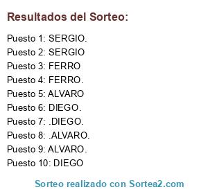 Lista de participantes: FERRO, FERRO., .FERRO., DIEGO, DIEGO., .DIEGO., SERGIO, SERGIO., .SERGIO., ALVARO, ALVARO., .ALVARO..