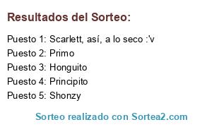 Lista de participantes: Shonzy, Principito, Honguito, Primo, Scarlett, así, a lo seco :'v.