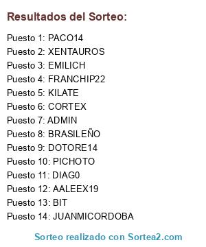 Lista de participantes: BRASI, PEDRO, NENIKO0, JUANMI.
