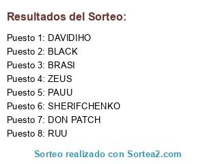 Lista de participantes: PAUU, RUU, BRASI, SHERIFCHENKO, BLACK, ZEUS, DON PATCH, DAVIDIHO.