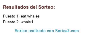 Lista de participantes: whale1, shrimp, dolphin, super whale, eat whales, weirdo, neko, slenderman.