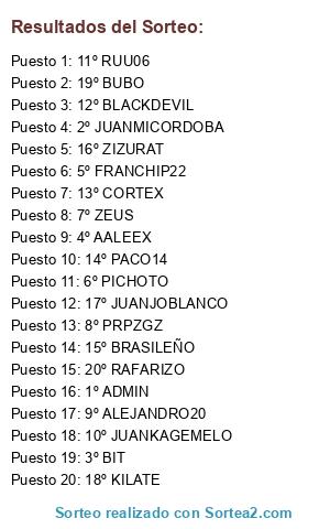 Lista de participantes: 1º ADMIN, 2º JUANMICORDOBA, 3º BIT, 4º AALEEX, 5º FRANCHIP22, 6º PICHOTO, 7º ZEUS, 8º PRPZGZ, 9º ALEJANDRO20, 10º JUANKAGEMELO, 11º RUU06, 12º BLACKDEVIL, 13º CORTEX, 14º PACO14, 15º BRASILEÑO, 16º ZIZURAT, 17º JUANJOBLANCO, 18º KILATE, 19º BUBO, 20º RAFARIZO.