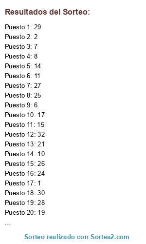 Lista de participantes: 1, 2, 3, 4, 5, 6, 7, 8, 9, 10, 11, 12, 13, 14, 15, 16, 17, 18, 19, 20, 21, 22, 23, 24, 25, 26, 27, 28, 29, 30, 31, 32.