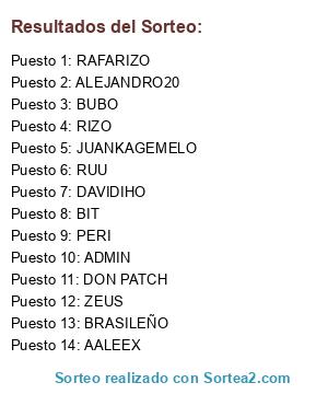 Lista de participantes: ADMIN, DON PATCH, ALEJANDRO20, BRASILEÑO, ZEUS, RIZO, BUBO, AALEEX, PERI, BIT, RAFARIZO, RUU, DAVIDIHO, JUANKAGEMELO.