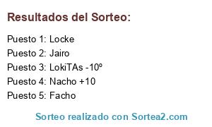 Lista de participantes: Nacho +10, LokiTAs -10º, Jairo, Locke, Facho.