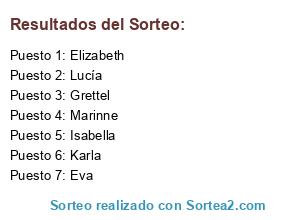 Lista de participantes: Eva, Lucía, Grettel, Elizabeth, Karla, Marinne, Isabella.