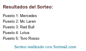 Lista de participantes: BMW Sauber, Hispania, Lotus, Mc Laren, Mercedes, Red Bull, Toro Rosso, Virgin, Williams.