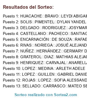 - Puesto 13: SELLADO CARRASCO MATEO SEBASTIAN