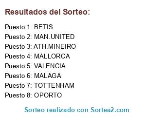 Lista de participantes: MALAGA, ATH.MINEIRO, MALLORCA, MAN.UNITED, VALENCIA, OPORTO, BETIS, TOTTENHAM.