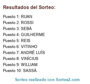Lista de participantes: ROSSI, GUILHERME, VITINHO, ANDRÉ LUÍS, SEBÁ, SASSÁ, WILLIAM, VINÍCIUS, RUAN, REIS.