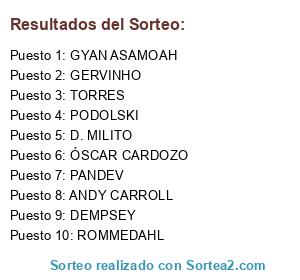 Lista de participantes: PODOLSKI, ÓSCAR CARDOZO, GERVINHO, TORRES, ANDY CARROLL, PANDEV, DEMPSEY, D. MILITO, GYAN ASAMOAH, ROMMEDAHL.