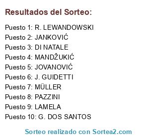 Lista de participantes: J. GUIDETTI, MÜLLER, MANDŽUKIĆ, PAZZINI, R. LEWANDOWSKI, DI NATALE, JOVANOVIĆ, JANKOVIĆ, G. DOS SANTOS, LAMELA.