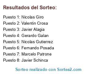Lista de participantes: Nicolas Giro, Marcelo Patrone, Valentin Crosa, Javier Schinca, Javier Alagia, Gerardo Galan, Nicolas Gutierrez, Fernando Posada.