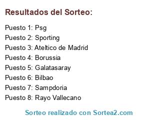 Lista de participantes: Bilbao, Sampdoria, Rayo Vallecano, Sporting, Borussia, Psg, Galatasaray, Ateltico de Madrid.