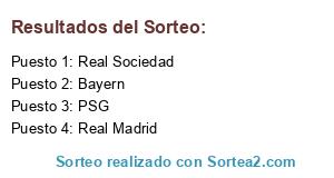 Lista de participantes: PSG, Real Madrid, Bayern, Real Sociedad.