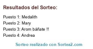 Lista de participantes: Mary, Medalith, Arom báñate !!, Andrea.