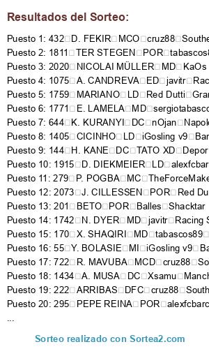 Resultados del sorteo: