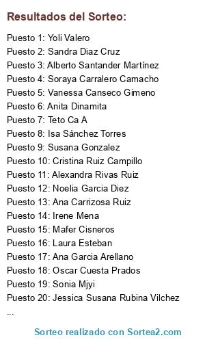 Lista de participantes: Oscar Palacios Porrero, Jen Fer, Ana Solorzano, Sandra Diaz Cruz, Jose Castro Notario, Carolina Arroyo Romero, Olga Sasig, Jessica Susana Rubina Vilchez, Alberto Santander Martínez, Noelia Garcia Diez, Miriam Azahara Santiuste Vilches, Laura Martin, Robert Resorte, Susana Gonzalez, Mariano Sáez Montes, Patricia Rodriguez Sanz, Tino Riesgo, Angela Chamizo Castilla, Teto Ca A, Alexandra Rivas Ruiz, Sonia Mjyi, Eva Maria Cucharero, Cristina de la Fuente, Enrique Chamorro, Irene Mena, Sara Rodrigues Da Silva, Laura Vaqueriza, Laura Bolaños, Silvia Durán, Macarena Garcia Melguizo, Lorena Garcia Bermudez, Fedra Barba Robles, Patricia Yagüe Alvarez, Nora Moreno Barbera, Ana Garcia Arellano, Natalia AR, Ma Za Gűe, Ana Carrizosa Ruiz, Thais Con H, Patri Martinez, Raquel Carrero, Mafer Cisneros, Chony Morena, Almudena Platas, Bhavika Amarnani, Yoli Valero, Noemi de Madariaga, Vanessa Canseco Gimeno, Isa Sánchez Torres, Mary Fernandez Gonzalez, David Del Olmo Suárez, Laura Esteban, Clara Noguera Martinez, Esther Torrecilla Zarco, Cristina Fleita Muñoz, Andrea Huete Francisco, Soraya Carralero Camacho, Vanesa Sanchez, Laura Fernandez Garcia, Laura López Lería, Oscar Cuesta Prados, Jesica Pepi, Cristina Perez Cardeña, Mariela Gamazo Salas, Elena Pérez Colino, Patricia Martin Aragoneses, Almur Dena, Marta Terradillos, Gemita Paraquemas, Bea Redondo, Anita Dinamita, Cristina Ruiz Campillo, Maria Jesus Lopez Ortega, Teresa Gómez, Rubia Cb, Arantxa Guerrero Martinez, María Montes Gómez, Yessica Chan Sanchez Sanchez, Jorge Gomera.