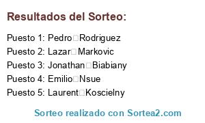 Resultados del sorteo: