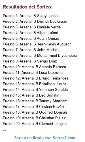 - Puesto 17: Arsenal B Cristian Pavón