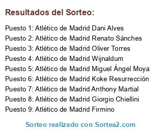 Lista de participantes: Atlético de Madrid Miguel Ángel Moya, Atlético de Madrid Marcel Schmelzer, Atlético de Madrid Dani Alves, Atlético de Madrid Laurent Koscielny, Atlético de Madrid Alberto Moreno, Atlético de Madrid Oguzhan Ozyakup, Atlético de Madrid Mateo Musacchio, Atlético de Madrid Renato Sánches, Atlético de Madrid José Callejón, Atlético de Madrid Oliver Torres, Atlético de Madrid Giorgio Chiellini, Atlético de Madrid Mario Gaspar, Atlético de Madrid Anthony Martial, Atlético de Madrid Jesus Corona, Atlético de Madrid Mathieu Valbuena, Atlético de Madrid Firmino, Atlético de Madrid Giovinco, Atlético de Madrid Koke Resurrección, Atlético de Madrid Gonzalo Escalante, Atlético de Madrid Mariano Díaz, Atlético de Madrid Memphis Depay, Atlético de Madrid Lass Diarra, Atlético de Madrid Thibaut Courtois, Atlético de Madrid Moussa Marega, Atlético de Madrid Wijnaldum.
