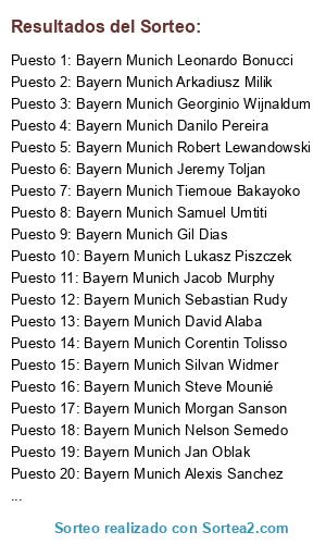 Lista de participantes: Bayern Munich Yannick Ferreira Carrasco, Bayern Munich Steve Mounié, Bayern Munich Danilo Pereira, Bayern Munich Morgan Sanson, Bayern Munich Jeremy Toljan, Bayern Munich Lukasz Piszczek, Bayern Munich Sebastian Rudy, Bayern Munich Arkadiusz Milik, Bayern Munich Silvan Widmer, Bayern Munich David Alaba, Bayern Munich Jan Oblak, Bayern Munich Jacob Murphy, Bayern Munich Oleg Shatov, Bayern Munich Samuel Umtiti, Bayern Munich Marc-Andre Ter Stegen, Bayern Munich Robert Lewandowski, Bayern Munich Wesley Hoedt, Bayern Munich Gil Dias, Bayern Munich Nelson Semedo, Bayern Munich Tiemoue Bakayoko, Bayern Munich Alexis Sanchez, Bayern Munich Leonardo Bonucci, Bayern Munich Georginio Wijnaldum, Bayern Munich Corentin Tolisso.