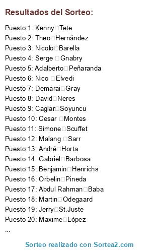 Lista de participantes: Benjamin Henrichs, Theo Hernández, Cesar Montes, Maxime López, Serge Gnabry, André Horta, Nicolo Barella, Ozan Tufan, Jerry St.Juste, Kenny Tete, Adalberto Peñaranda, Nico Elvedi, Malang Sarr, Orbelin Pineda, David Neres, Simone Scuffet, Andrija Zivkovic, Caglar Soyuncu, Ryan Sessegnon, Demarai Gray, Abdul Rahman Baba, Gabriel Barbosa, Riechedly Bazoer, Martin Odegaard.