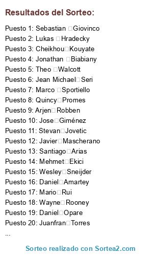 Resultados del sorteo: