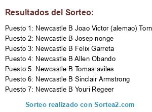 - Puesto 1: Newcastle B Joao Victor (alemao) Tornich