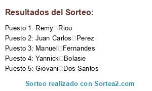 Resultados del sorteo: