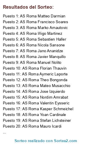 - Puesto 14: AS Roma Jose Izquierdo