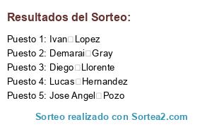 Resultados del sorteo: