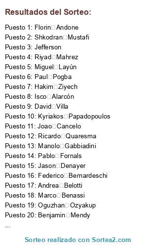 Lista de participantes: Paul Pogba, Miguel Layún, Florin Andone, Jefferson, Salvatore Sirigu, David Villa, Isco Alarcón, Marco Benassi, Kyriakos Papadopoulos, Shkodran Mustafi, Riyad Mahrez, Manolo Gabbiadini, Pablo Fornals, Ricardo Quaresma, Federico Bernardeschi, Hakim Ziyech, Joao Cancelo, Andrea Belotti, Oguzhan Ozyakup, Jason Denayer, Benjamin Mendy.