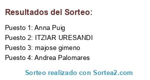 Lista de participantes: Salut Pablos, majose gimeno, Ana Belén Fernández , Ana Serrano, Isabel Pozo, Begoña Martín, ANGELA MARTIN, Reme Mollá, María Pérez Torromé, Andrea Palomares, Amanda Lozano, patricia corral , mayte ruiz, Verónica Diez, Alexandra Hortelano, Patri Toribio, Iria María Rodríguez, Eva Fuentes, MARÍA MISS SHOPPING, andrea gonzalez, Patricia Baltazar, Irene Gaya, Ana Cerro, Gisella Flores, VERONICA LLORENTE, Paqui Ramirez, Gema Cormano, Annabella Zammarelli, Alicia Lorenzo, Ana Martin, Eyla Martínez, TALISSA GABIN, Míriam priego , Ana Belén Asensio, maria leticia hermoso, Melania Olivencia Conesa, Leyre Compadre, rocio garcia, Patricia Torres, laura gonzalez, sheila muñoz, Aracely Filgueiras, Diana Buceta Lores, Marta Ruiz, Vanessa Alonso, Cristina Casillas, ana sanchez perez, ROCIO HIDALGO BIKARDI, Laura Menéndez Cano, Azahara Palacio, Soraya Gómez, BELEN GARCIA CARREBGAL, YOLI ESTEVE, Noelia Gómez, INMACULADA RODRIGUEZ, Paloma López, Beatriz Charameli, Ana Rodríguez (mr_noj), Ana Acosta, Maria Martinez Brody, Roser Valo, Mayeya Blanco, Emma Estevez, Vanessa Martinez, loly barcena, Evelyne GONZALEZ, Maria Luisa Moreno , Silvia Camarero, asunita ndong asangono, Marta izquierdo, CARI RAMOS, Rocío Roman, ELISABET BOULLOSA, Laura Martínez , Sara Lopez, MARIA PALOMINO hazel_mpt, Anamaria Cano, Mabel Campo, Patricia Tablado, Dolores Sanchez, Andrea Morales, Rosa Vargas, Inma Marín Cabezuelo, Aroa Garcia, Celeste García, Oscar Herrero, Stefy Q, Ingrid Chico, Nora Ibarra , Ángeles Ramírez, irene rossello, Patri Graña, María Lorena García, Xelo Garcia, macarena mesina, Esther Antolinez , Cristina Zamorano, Ana Pérez, africa franco , Mª Jesús Gomila, Berta Prieto, Srta.palomo (lucía Rico), Lola Lemans, Mariel Aguilera , nieves moreno, Patricia Urizar, Jessica Molina (Calçats Segundo Par Olesa), Patricia Guillen, Ana Belén García, Noelia Gimenez , Noemí Serrano, Elena Villalonga, ana muñoz, nuria fernandez, Mirta Adriana Pereira, Ainara Gonzalez, monica sanchez, Alicia Burdaspar, Raquel Rodríguez , ITZIAR URESANDI, Mari Carmen Alite, Mónica Martín, Mónica Taboada Glez, Laura Aguilar, Patricia Martínez, chari sanchez, Nuria Lobato, Daniel Gomez, Anna Puig, Ariadna Pozas, Raquel galiano, Seila Nieto, Mercedes Llàcer Benedicto, Maite Galiano, Eva Berlanga, isabel martinez, isabel lozano, rosa martinez, lennys vera, Iliana. Avilez, piedad Martinez Llamera , Yamy Morrell , Mayte Gutiérrez, Alba Farah, laura muñoz , Patricia tomas , Beatriz Gallego, Nuria Arias, Natalia Navarro, Carmina Perez, Patricia Bellido, MariaRosa Fdz, Loli Ansrades , tere gonzalez, Lúa Monterroso, vanessa Sánchez , Esther Andrés (@escueladeguapas), Carolina Toledo, Jennifer saavedra, EuEraMorena (Lucía Arcos), Lucia martin, Angeles Lucas, Tània de la Rosa, Montse Prieto, manoli montarroso, Alejandra Zipitria, Melissa Gomez, Nere Huante , betsy terrazas, Rocio Bonich, Silvia Rivera, Mari Molina, Andrea Martínez.