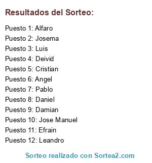 Resultados del sorteo: